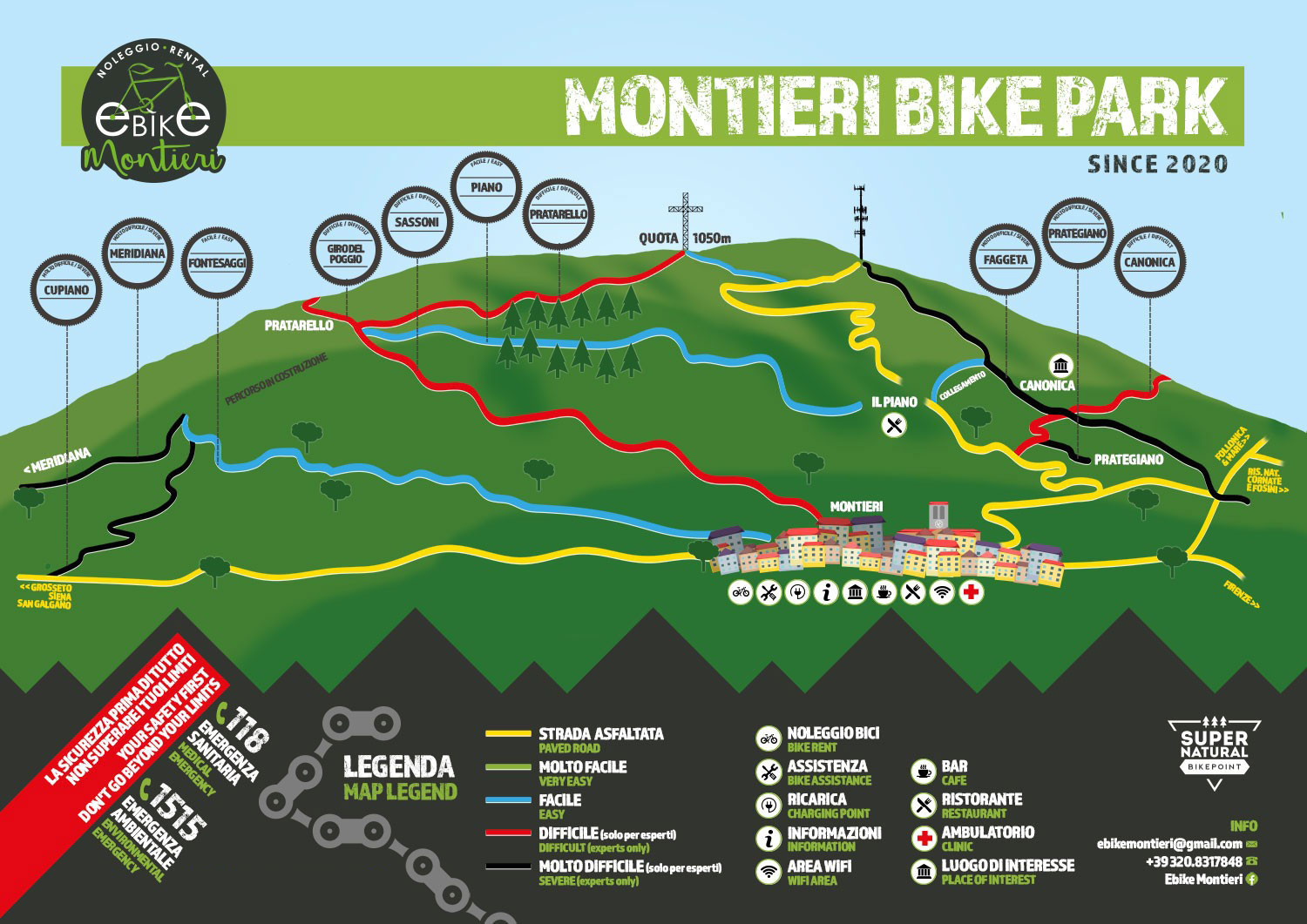 In the village of Montieri, a shop for e-bike and equipment rental, a small workshop, but also to find information, maps and decide whether to take part in the guided tours organized from spring to autumn or discover the trails independently.
